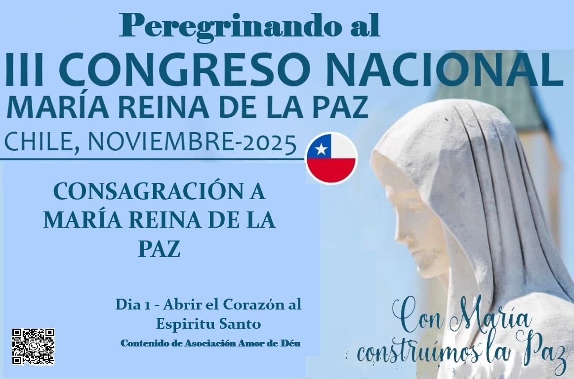 Desde Chile nos llega la invitación de consagrarnos a María Reina de la Paz, rumbo al III Congreso Nacional que se celebrará del del 11 al 15 de noviembre en Santiago bajo el lema: «Con María construimos la paz». Toda la información del congreso se puede ver aquí.