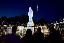 Hoy hubo más gente que ningún otro día de la novena. De tantos países diferentes, de distintos idiomas, rasgos, culturas… Todos juntos a los pies de la Reina de la Paz, orando por la paz. Numerosos sacerdotes, religiosas, muchos medios de comunicación que transmitían en vivo lo que sucedía, todos… ¡Miles!
