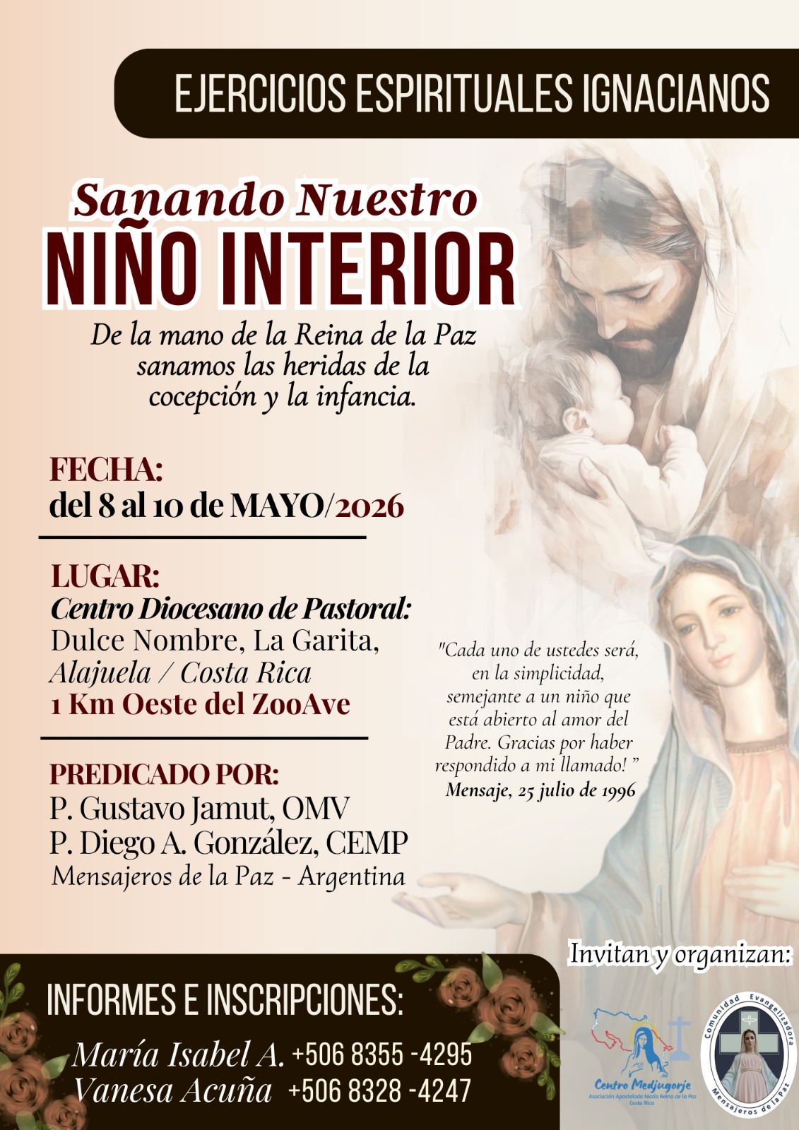 Del 8 al 10 de mayo de 2026 se llevarán a cabo en Costa Rica los Ejercicios Espirituales Ignacianos “Sanando nuestro niño interior”, una propuesta de retiro espiritual orientada a la sanación de las heridas profundas de la vida.