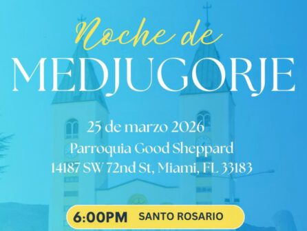 Este 25 de marzo, el Florida Center for Peace les invita a una noche especial de paz y oración en honor a la Reina de la Paz. En la parroquia Good Shepherd, de 6:00 PM – 8:00 PM