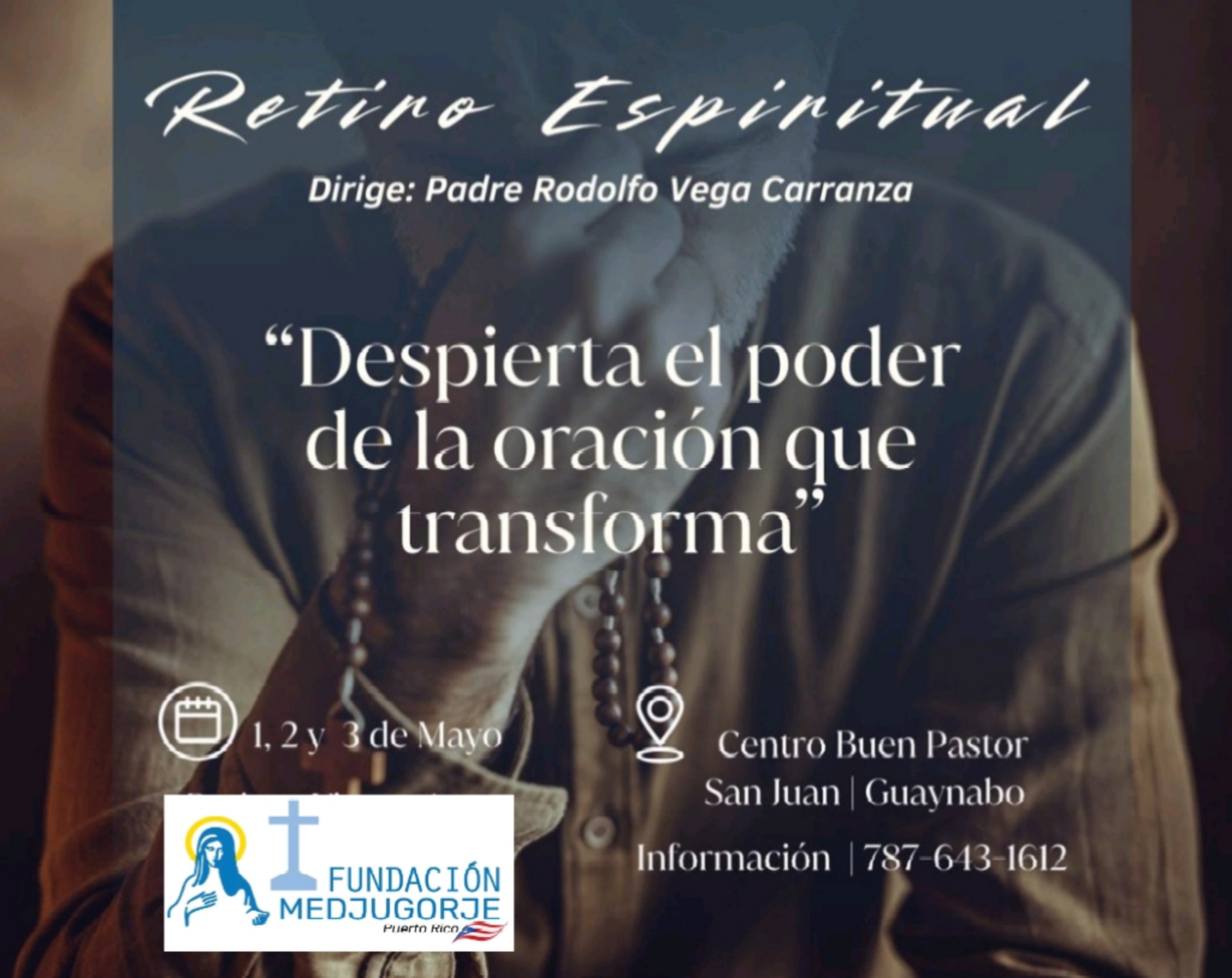 Del 1 al 3 de mayo de 2026 se llevará a cabo un retiro espiritual, dirigido por el P. Rodolfo Vega Carranza, bajo el lema “Despierta el poder de la oración que transforma”, una propuesta dirigida a todos aquellos que deseen profundizar en su vida interior y renovar su relación con Dios a través de la oración.