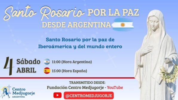 Esta iniciativa nace en respuesta al insistente llamado a orar por la paz que nos hace nuestra Madre, la Reina de la Paz. En el mes de abril, el próximo sábado 4, con la transmisión en directo desde Argentina, a las 11.00 de la mañana, hora local.