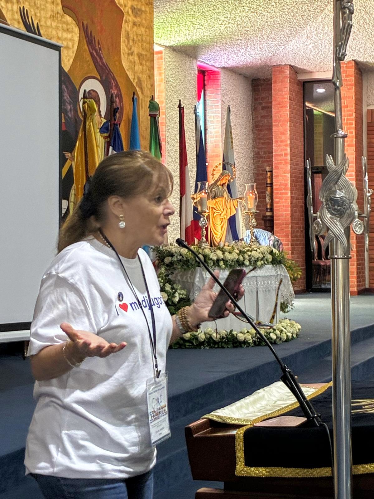 “María es Reina de la Paz porque su corazón era limpio, dócil, disponible… Que este Congreso no sea solo un evento. Que sea una elección. Elegir: un lenguaje más limpio, una mirada más misericordiosa, una intención más recta, una vida más coherente. Que, al regresar a sus países, a sus comunidades, a sus familias, sean faros en medio del mar agitado de este mundo. Faros que no gritan, pero iluminan. Faros que no imponen, pero orientan”.