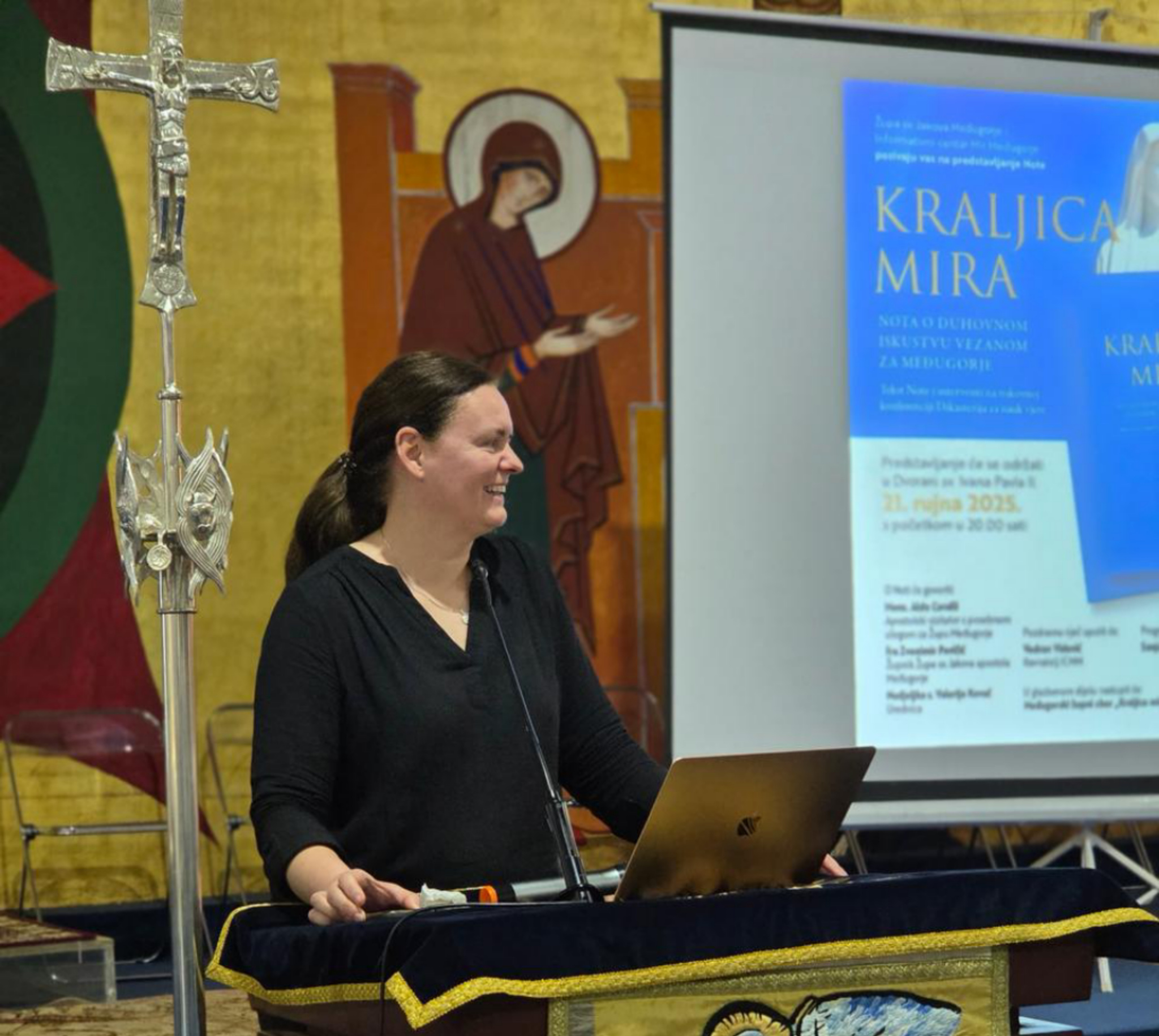 A continuación, Filka Mihalj Pedretti presentó el libro Reina de la Paz. La obra se fundamenta en la nota “Reina de la Paz”, publicada por el Dicasterio para la Doctrina de la Fe en septiembre de 2024, en la que la Iglesia emitió una decisión histórica sobre Medjugorje al conceder el Nihil Obstat, autorizando oficialmente el culto público y las peregrinaciones. En ese documento se reconoce que la experiencia espiritual vivida allí ha producido abundantes “frutos positivos”, como conversiones y vocaciones.