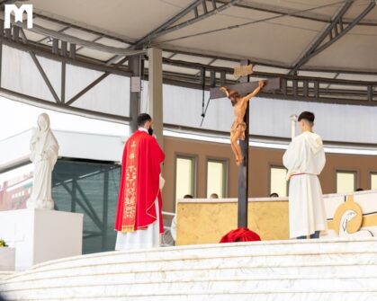 En el altar exterior de la iglesia de Santiago Apóstol en Medjugorje, ante una multitud de feligreses y peregrinos, se celebraron los oficios del Viernes Santo, durante los cuales la Iglesia conmemora la pasión y muerte de Cristo en la cruz. Los oficios del Viernes Santo constan de tres partes: la Liturgia de la Palabra, la adoración de la Cruz y la santa comunión.
