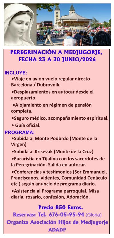Peregrinación Junio 2026 – Asociación Hijos de Medjugorje ADADP